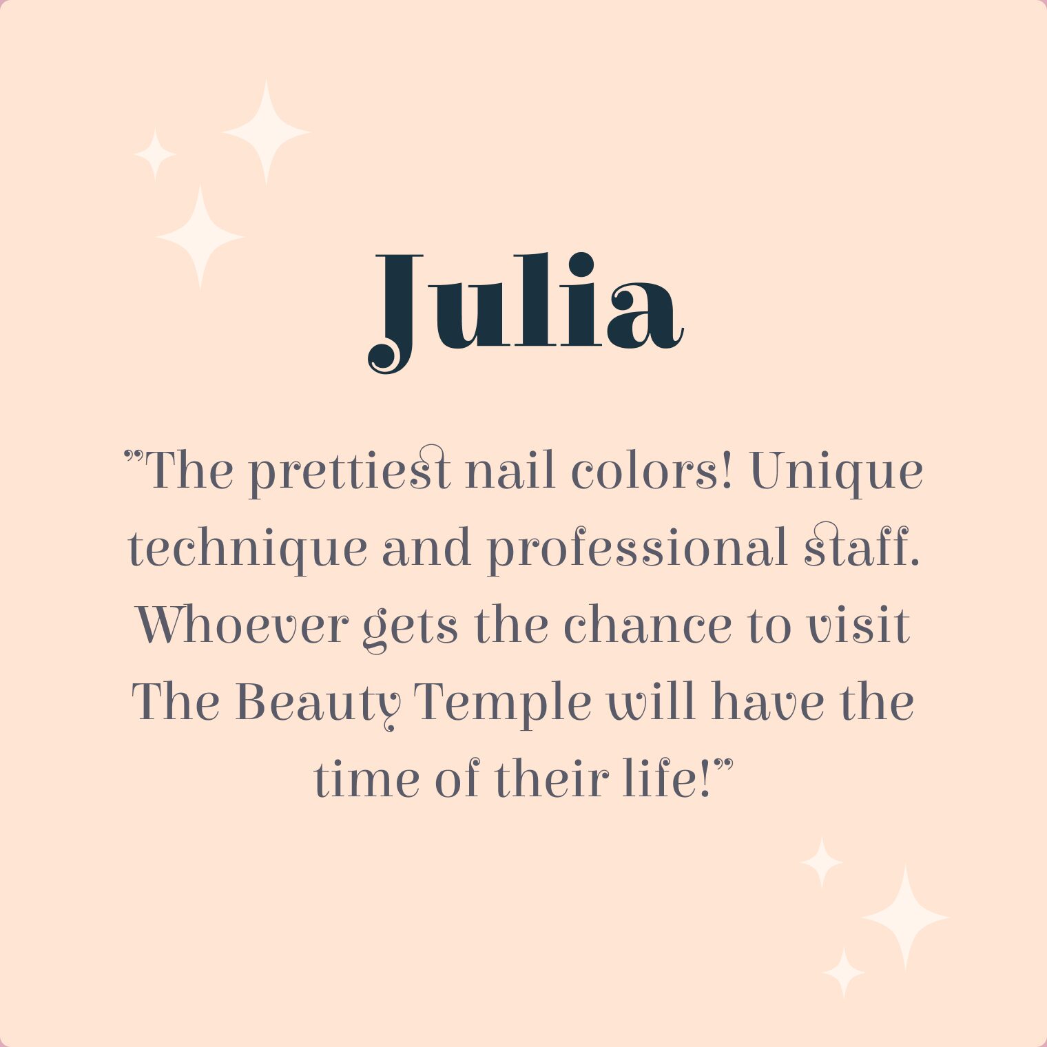 ”The Beauty Temple is the best in town, offering professional services such as hair, nail, skin care, tanning and massages.”